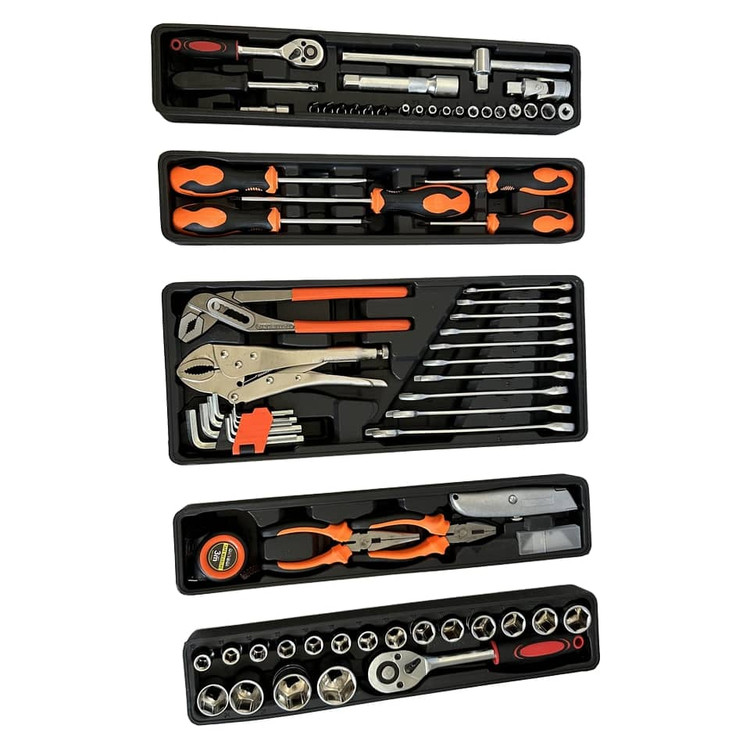 محتویات : ست کامل بکس + ست پیچگوشتی + آچار کلاغی + انبرقفلی + متر + کاتر + ست آچار آلن + ست آچار یکسر تخت یکسر رینگ